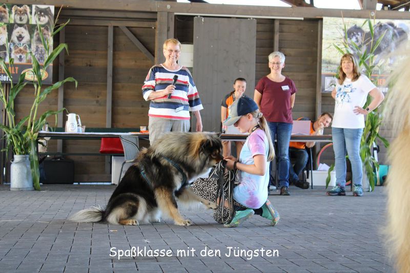 Spaßklasse: Für alle Nichteurasier und Eurasier, die sich nicht zur Schau stellen möchten - sie dürfen stattdessen ein Kunststück vorführen. Auch die jüngeren Zweibeiner können hier zeigen, was sie ihrem Hund beigebacht haben.